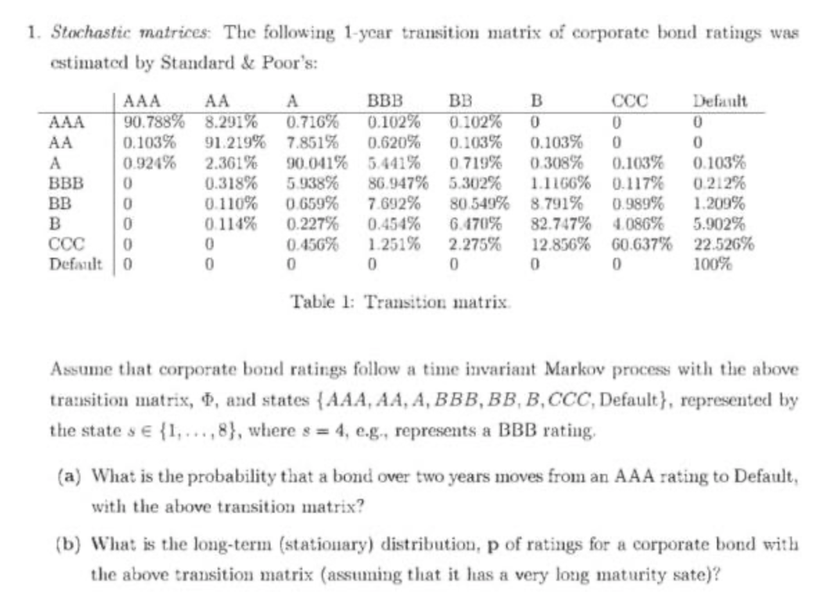 0 1 Stochastic Matrices The Following 1 Ycar Chegg Com